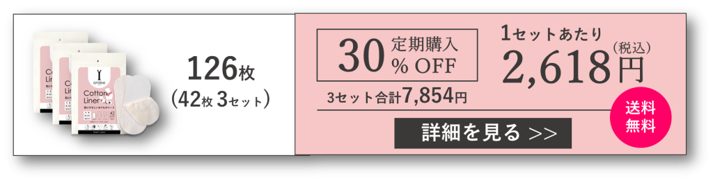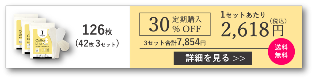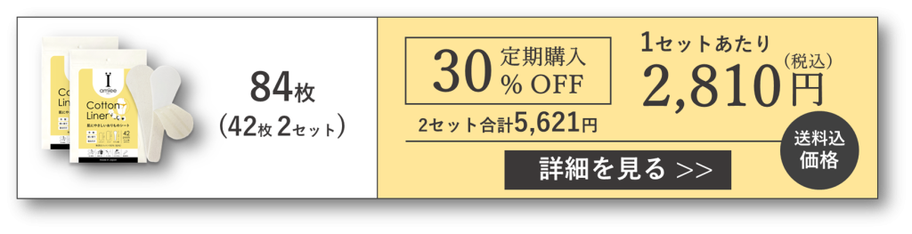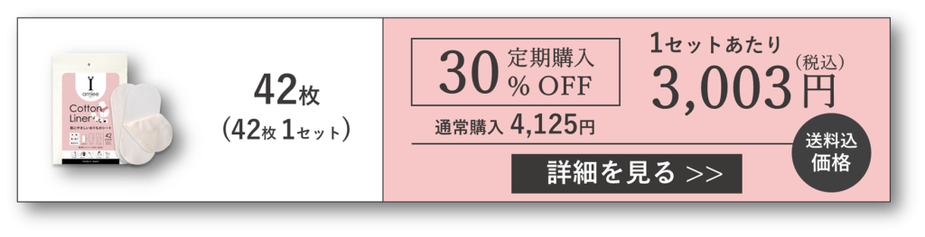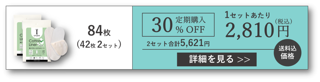 アミーの公式オンラインストアでは、使い捨て布ナプキン・布おりものシートである「コットンライナー」42枚入りを2セット以上購入すると割引になります。